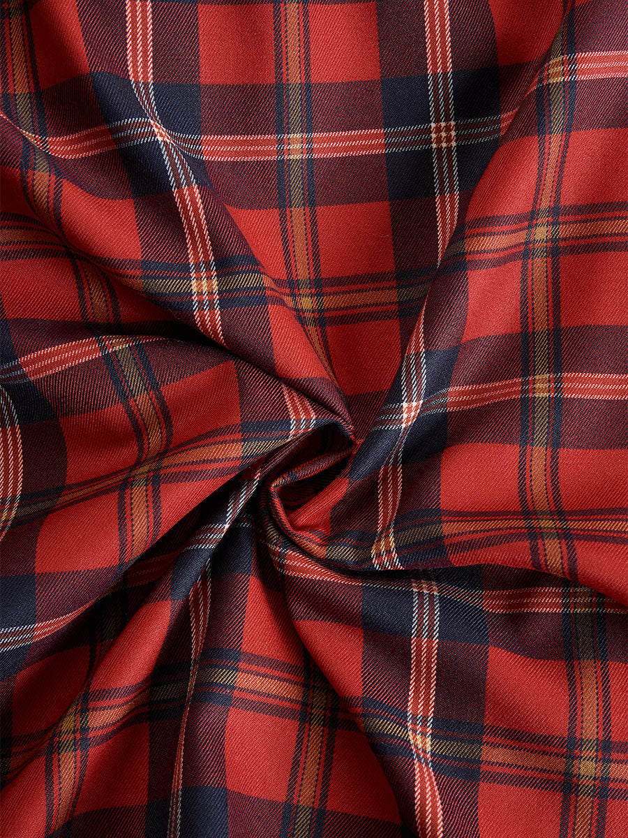 • Design: Red plaid pattern